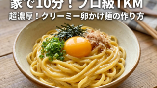 自宅で簡単に作れる「プロ級の卵かけ麺(TKM)」のレシピを解説。卵と油を乳化させるコツや、麺の茹で方、失敗しないポイントまで初心者でも再現できるよう丁寧に紹介します。忙しい日のランチや夜食にもおすすめの時短レシピです。
