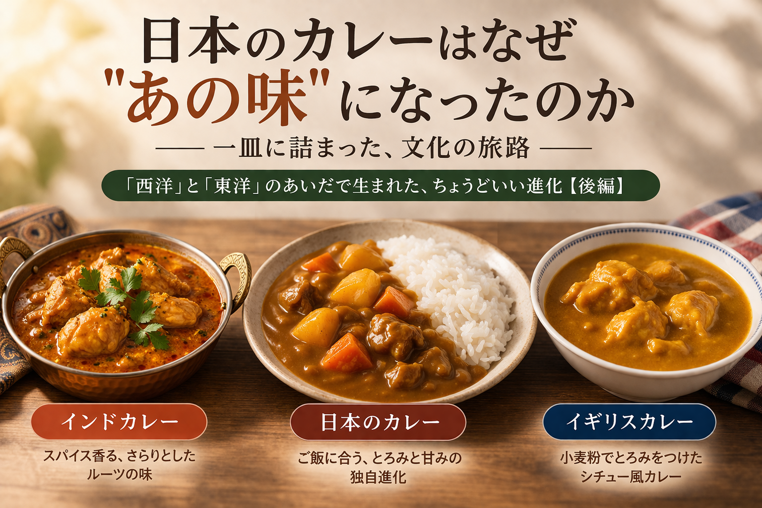 次にカレーを食べるとき、ひと口めに「インド→イギリス→日本」という旅路を少しだけ思い浮かべてみてください。