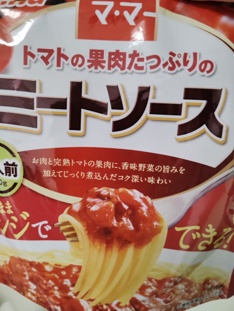 先日ふらっと立ち寄って、いつもの マ・マー 果肉トマトたっぷりミートソース をカゴに入れながら、ふと思ったんです。